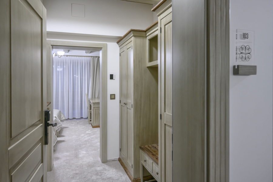 Doprajte si pobyt v našej komfortne zariadenej dvojlôžkovej izbe s balkónom, ktorá spája útulnú atmosféru s moderným vybavením pre Vašu pohodu. Vychutnajte si pocit domova s hotelovým štandardom - od mäkkého županu a papúč, až po minibar, trezor, televíziu so streamovacími službami a starostlivo vybrané toaletné potreby.